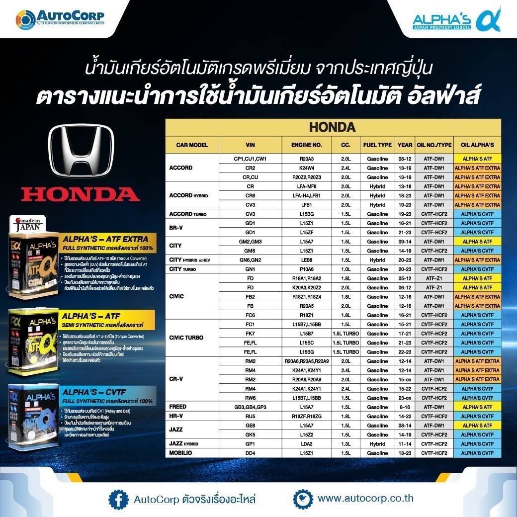 ALPHA’S Application Chart สำหรับรถ HONDA